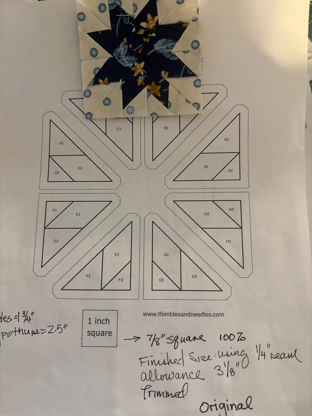 General tips on foundation paper piecing and order of assembling the sections are included but the maker is assumed to know how to foundation paper piece. Fabric requirements and cutting instructions are not included.